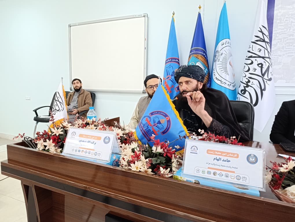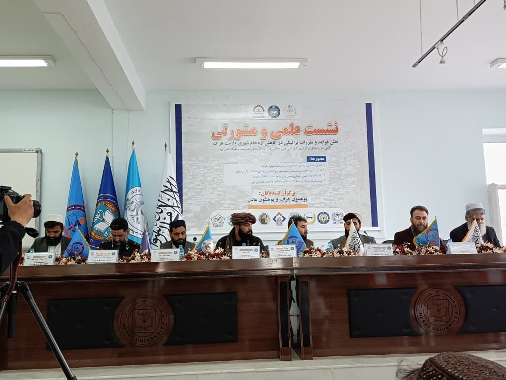 اداره ملی حفاظت محیط زیست امارت اسلامی افغانستان در ادامه برنامه‌های آگاهی‌دهی و هماهنگی‌های علمی، در ولایت هرات نشست علمی و مشورتی را پیرامون نقش قواعد و مقررات ترافیکی در کاهش ازدحام شهری و آلودگی‌های محیط‌زیستی برگزار نمود.